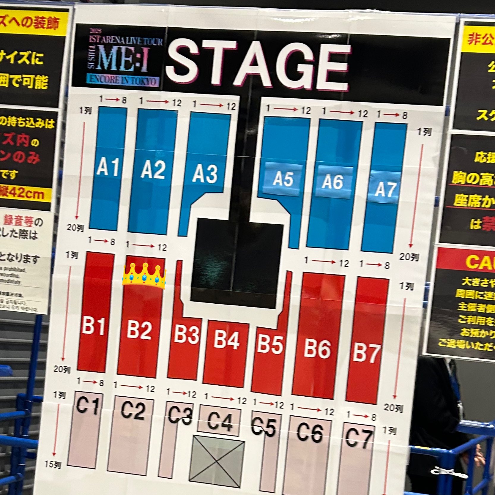 たまたま横に座った人たちもME:Iのライブに行ってた大学生で、ライブ途中に落ちてきたハートの紙などをあげたりしたり、いろんな話をして盛り上がった。