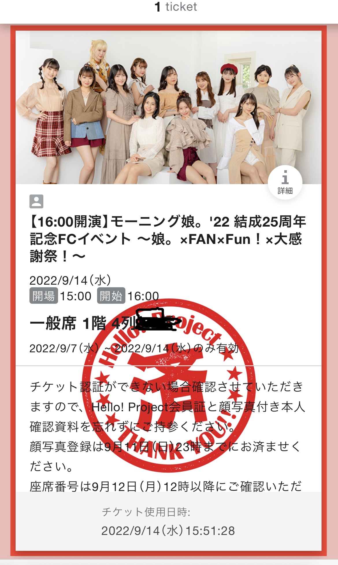 25周年ということでもしかして鞘師里保の出演があったりするのではという邪な考えで速攻申し込みをしたのだが、熱心なファンに聞いたら、あってもVTRぐらいですよ、とのこと。