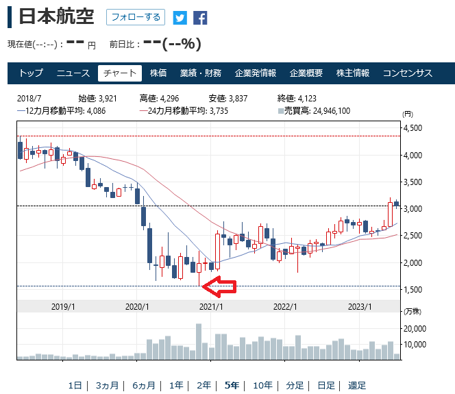 特に利用が多かった日本航空は、コロナがおさまれば絶対にまたあがってくるはずと言われていました。