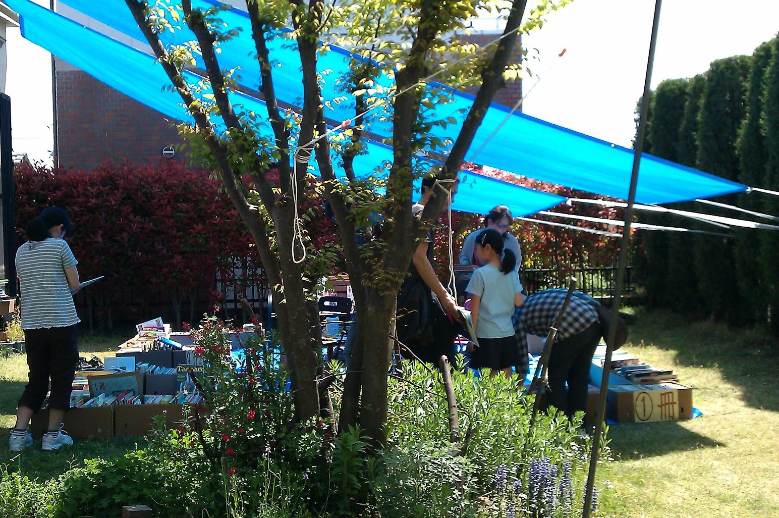 画像は昔、自宅の庭で古本の即売会を開催した時のものです。