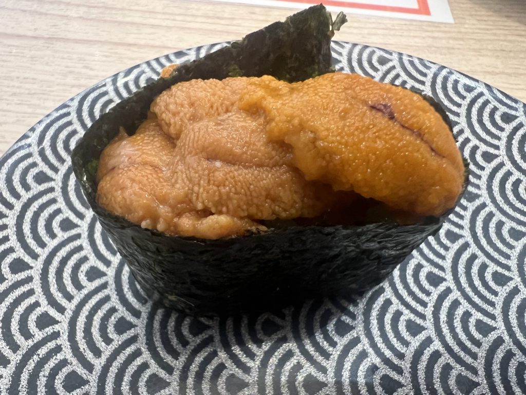 仙台空港から仙台駅までJRで移動。徒歩で『廻鮮寿司 塩釜港 仙台店』へ。