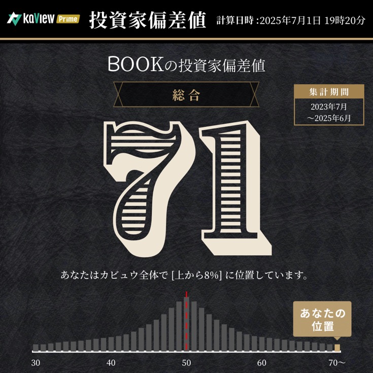 持ち株を管理するアプリ『カビュウ』には投資家偏差値を出してくれるサービスがある。