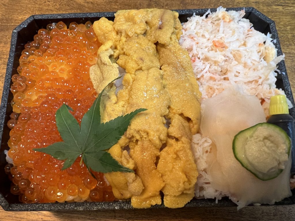 夜は帰り道にスーパーサポーレで購入したうにいくらかに丼。