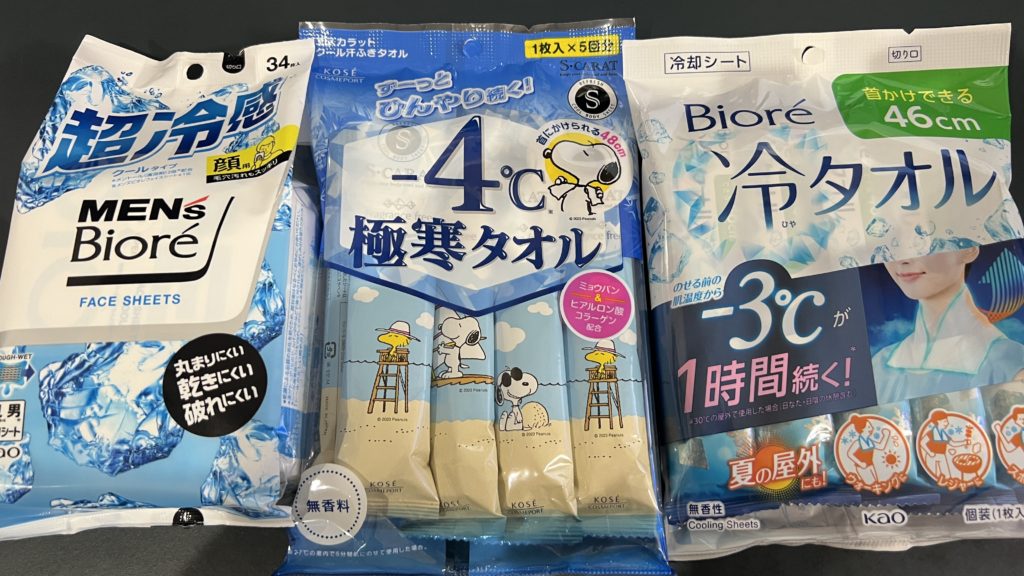 昨年いろいろ試した結果、使い捨ての冷感タオルが効果的であり、邪魔にならないし、人にもあげられることがわかり買っておいた。