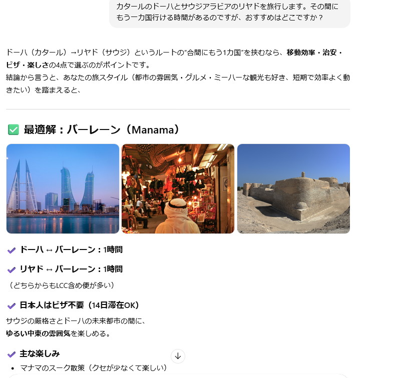 ChatGPTに相談しても、それはあなたの性格ならばサウジアラビアでしょと言われてしまったし。